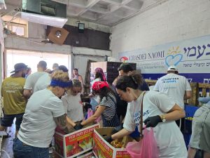 קבוצת צעירים מתנדבת במחסן חסדי נעמי בירושלים